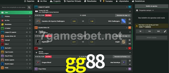 O gg88 oferece uma grande seleção de opções de apostas em e-sports com probabilidades competitivas